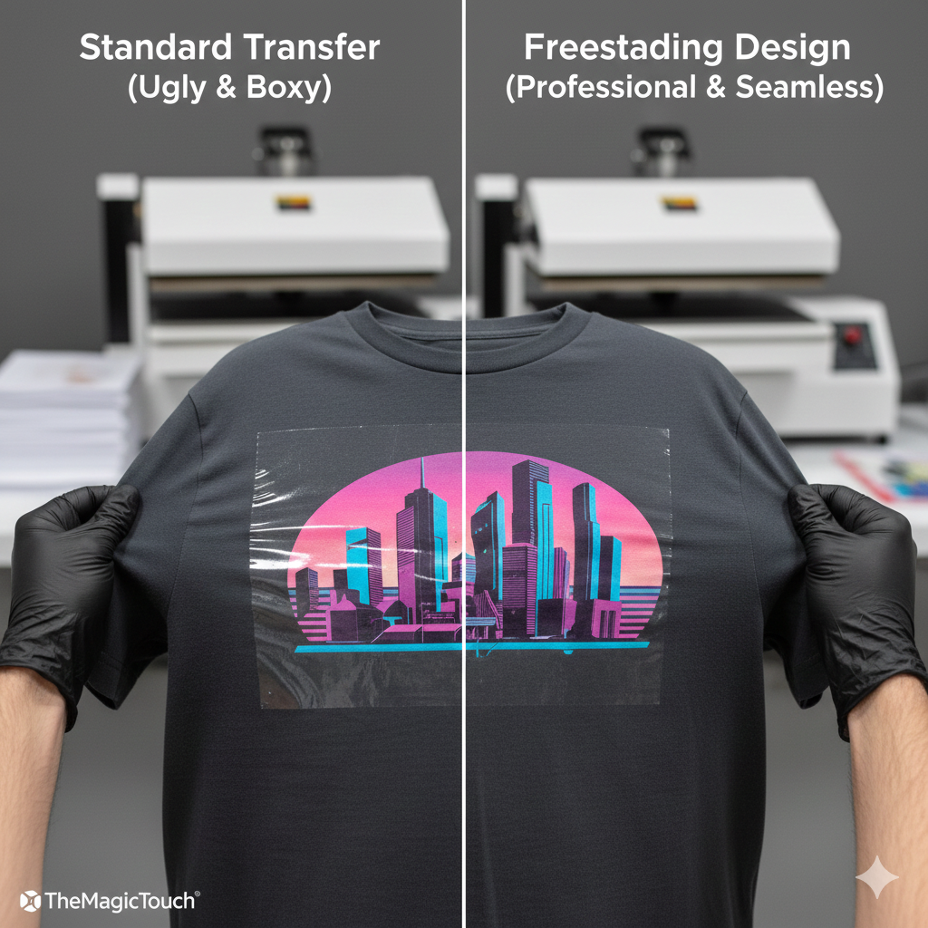 The ability to produce freestanding designs is a hallmark of high-quality apparel decoration. It significantly elevates the professional look of a garment, serving as a key indicator by avoiding the “cheap” look of heavy, plastic-feeling rectangular transfers.