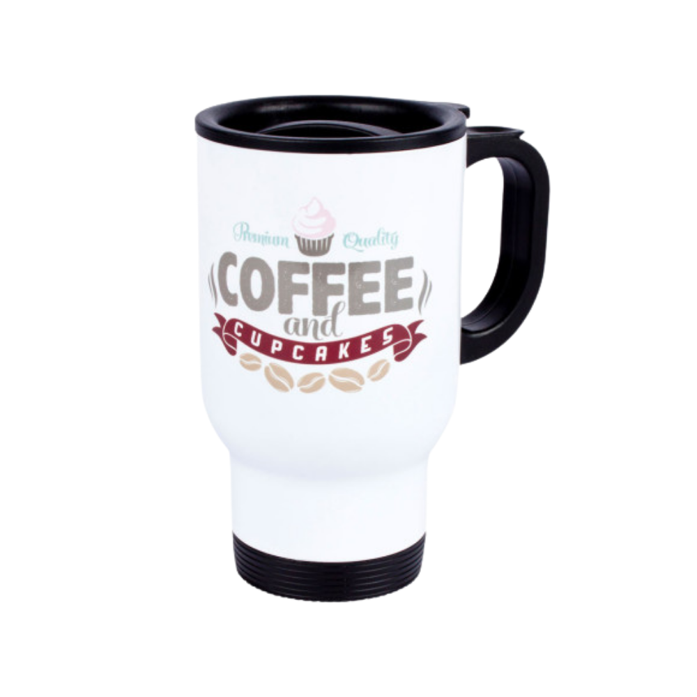 This double-walled stainless steel thermos is sturdy, impact-resistant, and lightweight. Convenient for travel and suitable for sublimation or transfer printing. The drinking and air openings of this stainless steel thermos mug can be easily opened and closed thanks to the practical twist handle on the lid. Featuring a convenient handle and a secure, lockable lid, this mug is not only functional but also makes a sustainable corporate gift with a company logo, or a personal present with a name, photo, or custom design.