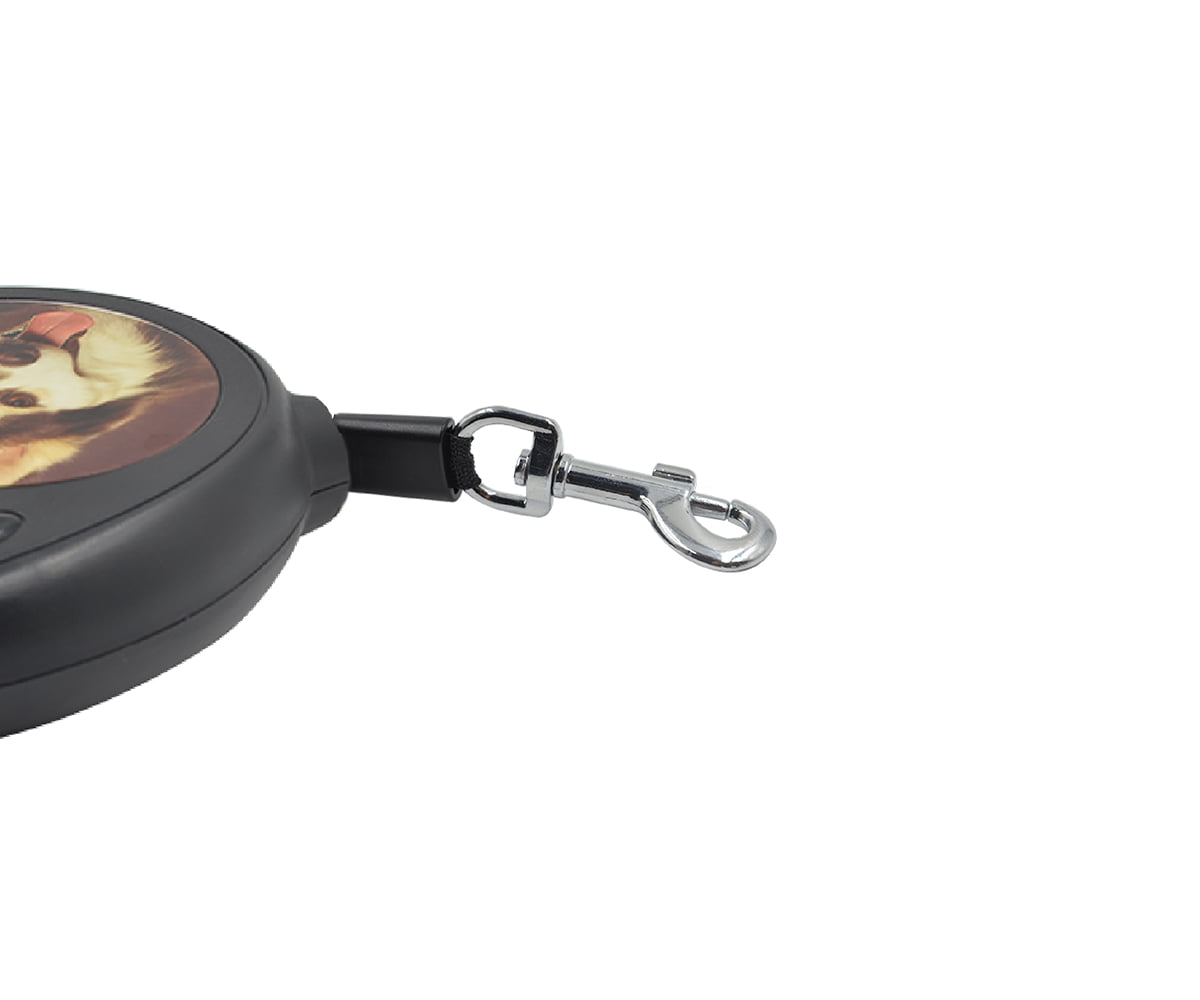 Our dog leash measures 5 meters or 7.8 meter and can be easily customized using a separately supplied self-adhesive sticker with an approximate 6 cm diameter.