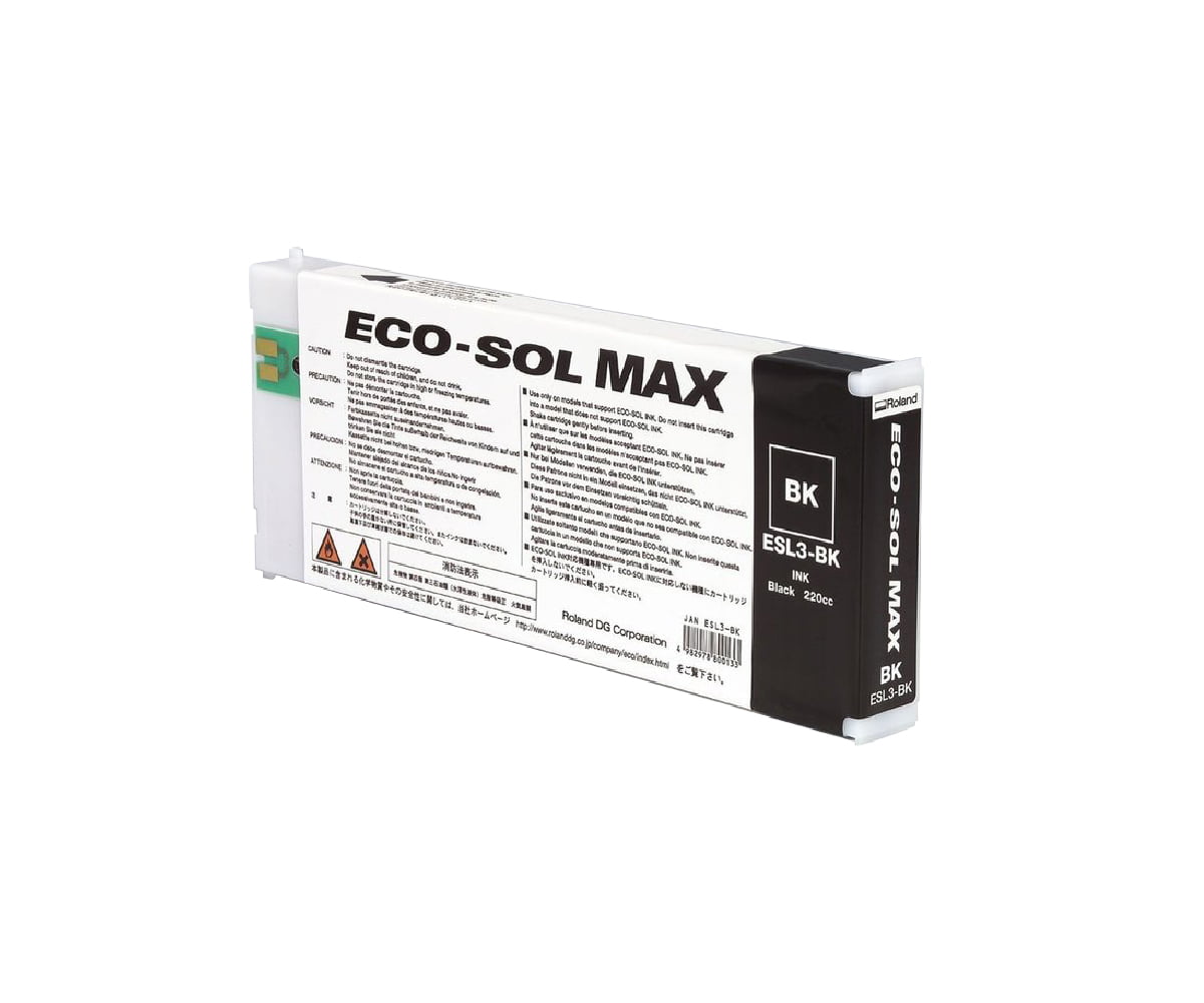 ESL4 ECO-Sol Max 2 Ink Black €109,00 You save SKU: 1193 In stock ESL4 ECO-Sol Max 2 Ink Black quantity Add to cart Order by 4:00 PM for Next-Day Delivery* Pricing Agreements for Every Customer Flexible & Secure Payment Options Rated 4.6/5.0 for Friendly, Expert Service 35+ Years of Proven Industry Expertise Description Specifications Description Roland ECO-SOL MAX is the ideal ink for outdoor applications. This mild solvent has a short drying time, high color density, wide color gamut, good scratch resistance and this at a low investment. Specifications Weight 0,7 kg Dimensions 52,4 × 10,0 × 2,6 cm Contents 220 ml Color Black Model Versastudio BN-20 Related products 1-2 working daysGrafityp Monomeric Print Media M112P from €59,90 You save per roll In stockUltimate Print Supersoft 4033 Matt from €64,90 You save per roll In stockUltimate Print Soft 4030 Matt from €64,90 You save per roll In stockPoli-Tack 853 €75,00 You save The perfect printing technique Everything you need to know to make the right choice. Discover more Having trouble? We're happy to help. +31 (0)23-5483100 Available Monday to Friday from 8.30 AM to 5.00 PM.