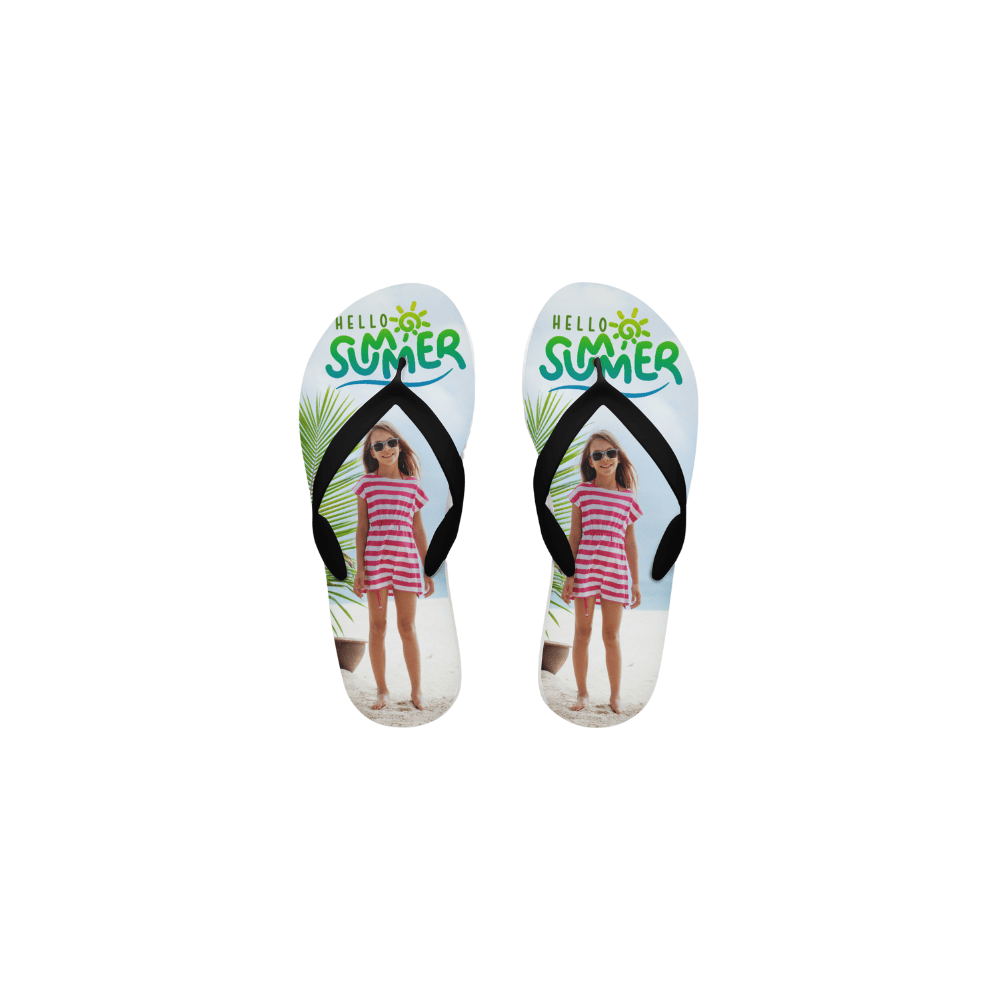 Step into summer with style! Our customizable flip-flops are perfect not only for the beach, the pool, or that sunny vacation, but they’re also a blank canvas for your creativity. Let your personality shine with every step you take. Choose your design, add a touch of individuality, and walk in personalized flair. Slide into summer with your unique style.