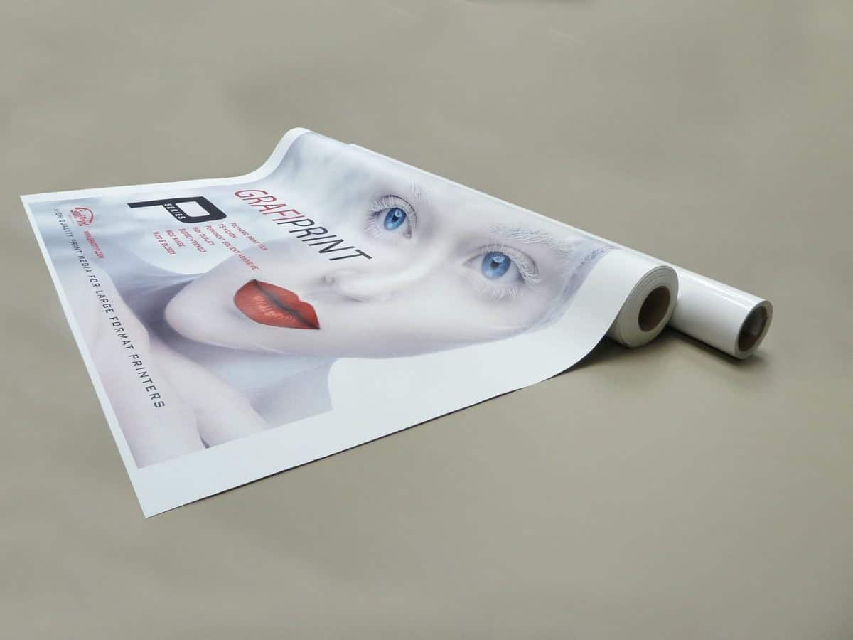P22P is a white glossy polymer vinyl with a permanent adhesive layer and a clay-coated backing. Suitable for flat and slightly curved applications, both for interior and exterior use. The film is printable on all solvent printers (eco/mild/hard), like the Roland BN-20 and the Roland BN20-A, latex printers, and UV printers.