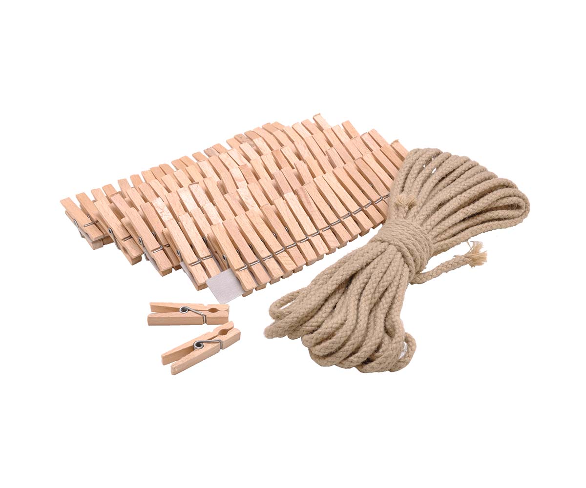 The set of 100 wooden pegs and 10 metre clothesline gives a durable appearance.
