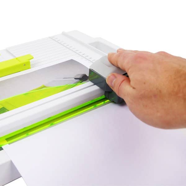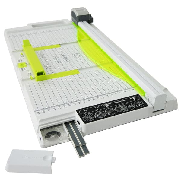 This cutter is ideal for small offices or home offices, capable of cutting sheets up to A3 size. It features an equal pressure distribution system and a calibrated base for added accuracy and stability. With the straight cutting blade, it can trim up to 20 sheets per cut, and with the perforation blade, it can trim up to 3 sheets per cut. The handle grip makes it easy to carry and use.