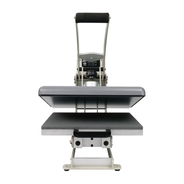TheMagicTouch Transferpers HTP123 Pro is designed for entrepreneurs who want to print many different products at the same time. This compact Clamshell Transfer Press is the only Clamshell with a smart pressure distribution over the entire press plate and can therefore also be used for all TheMagicTouch transfer papers. The HTP123Pro has an interchangeable digital display, a convenient slide-out tray and optional interchangeable plates. Thanks to a handy click system, replacing a plate in 3 seconds is a fact, the choice of a small press plate for sleeves and chest logos and two sizes for bags, trouser legs and uniforms. That makes the HTP123 an all-round transfer press for transferring to textiles and many products! Due to the special construction, an extra large gap between the press plates has been created, useful when using thicker materials.
