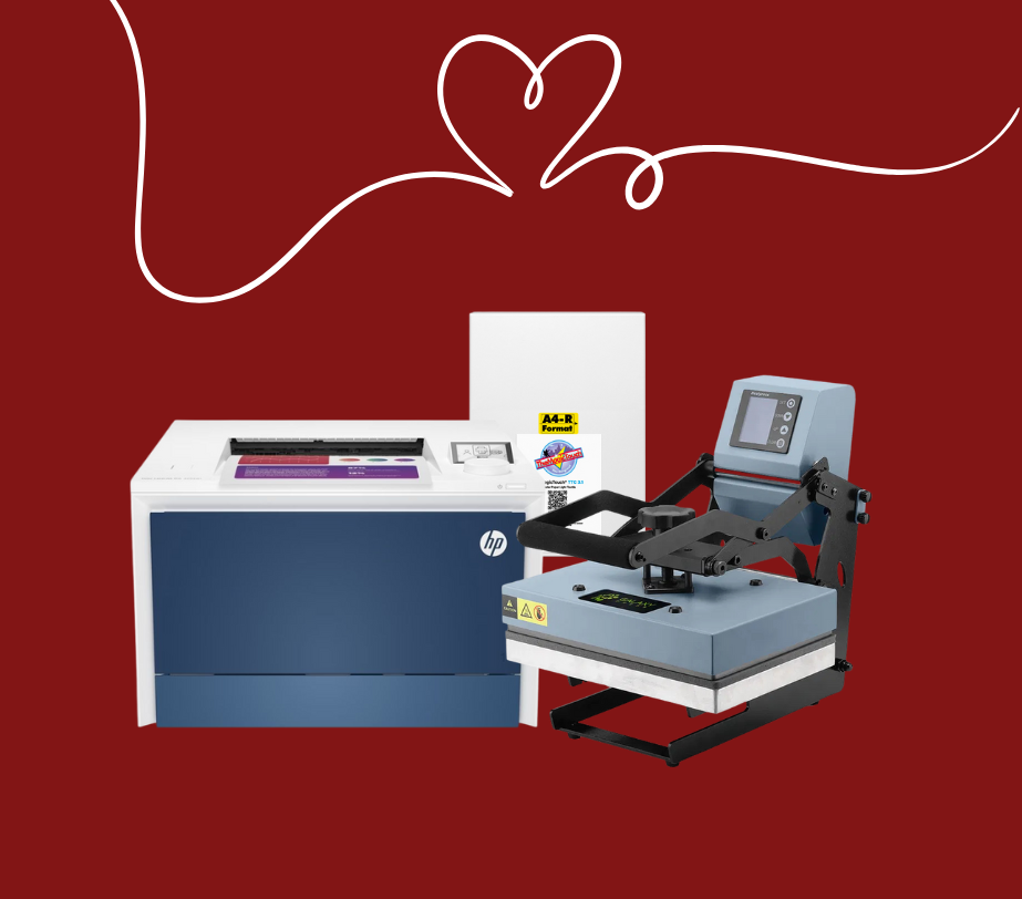 If you really want to surprise someone this Valentine’s Day, this start pack is highly recommended. It contains everything you need to create your own T-shirts, bags, hoodies, and many other blank products. It takes up very little space, and the printer can also be used for all your standard printing needs, including making stickers. The quality of a laser printer ensures professional results, and combined with our premium transfer paper and a high-pressure professional heat press, you can create stunning, high-quality finished products.