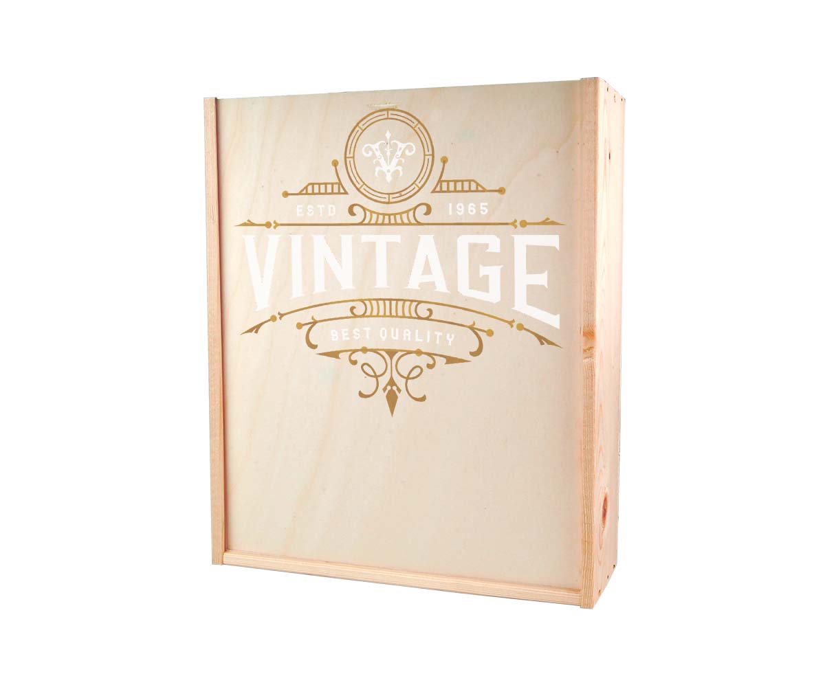 Whether it’s a birthday, a wedding or an anniversary: with this beautiful, traditional wine box you always have a suitable gift to give. Ideal in the assortment of liquor stores, wine merchants and companies. This stylish wooden box offers space for a bottle of wine, whisky, rosé or other delicious drink. The sliding box is made of sturdy wood and has a robust look. Thanks to the sliding lid, the box is very easy to open. Blank wine boxes are ideal for printing in your own house style with, for example, your company logo, a text or an image. For quantities from 180 pieces and more we are happy to give a quote.