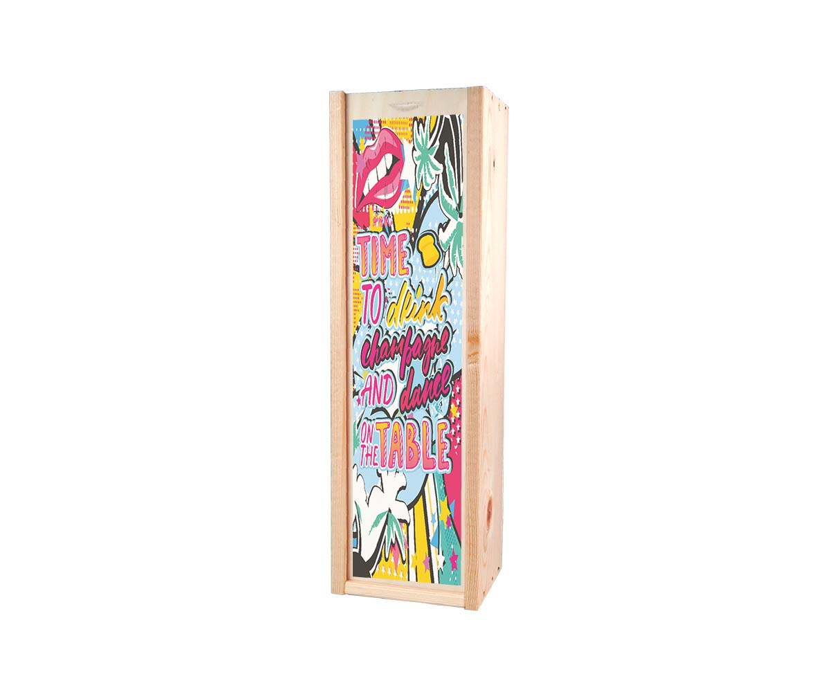 The wine box is made of sturdy wood and has a robust look. Thanks to the handy sliding lid included, the wine packaging is very easy to open. Blank wine boxes are ideal for printing in your own house style with, for example, your company logo, a text or an image.